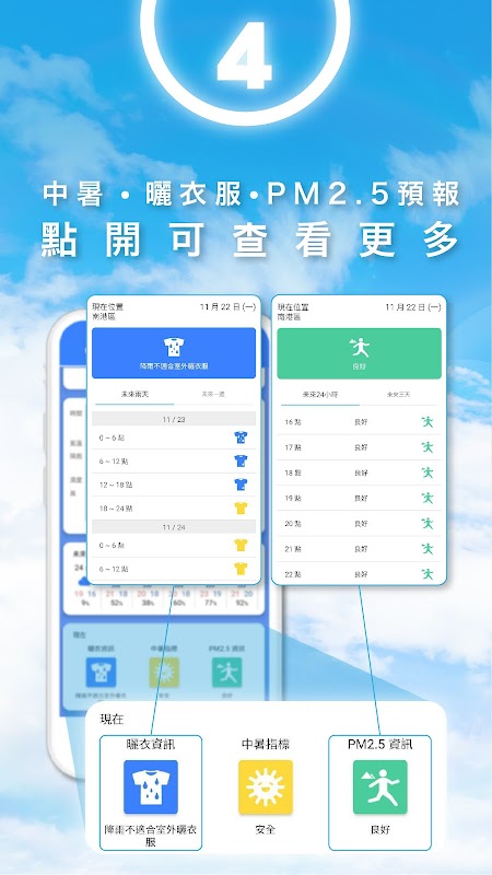 煩惱該不該洗衣服?害怕曬衣服後出門卻突然下雨?MixerBox天氣透過氣象資訊,整理出每個時段適不適合曬衣服的指標,讓您一目了然。