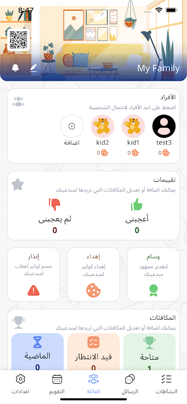 Mit der Mubda'in-Anwendung können Sie Ihrer Familie und Ihren Kindern durch Aktivitäten folgen, die Sie für Familienmitglieder festlegen können.