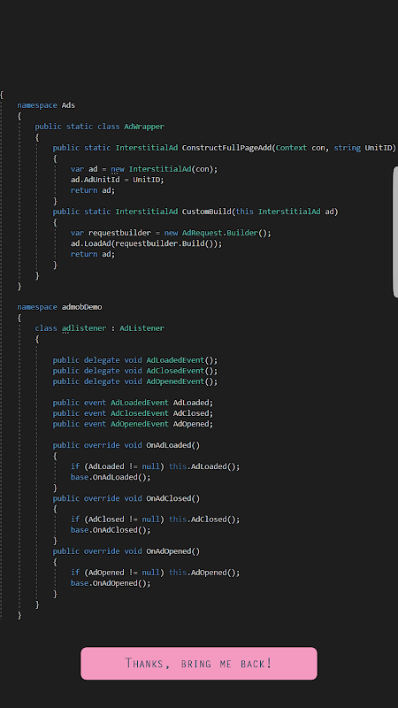 This app shows all common typs of mobile ads – such as the BANNER AD, the INTERSTITIAL AD, the REWARDED VIDEO AD + it shows how to implement an AD-LISTENER and an AD-WRAPPER. All of this together with the SOURCE CODE, the neccessary NUGET PACKAGES + DETAILED EXPLANATIONS and EXAMPLES in C# for XAMARIN.