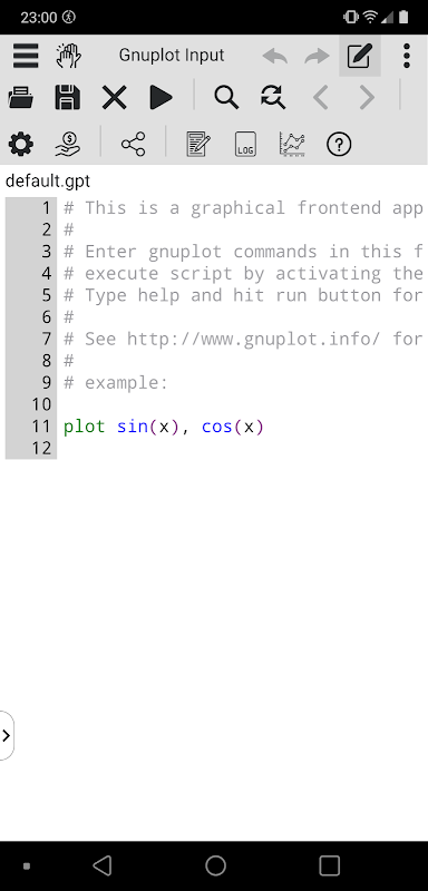 The Mobile Gnuplot Viewer (New) is a frontend for the Gnuplot program optimized for touch devices. Gnuplot is a scientific plot program. With the Mobile Gnuplot Viewer the user can edit gnuplot scripts to generate 1d and 2d plots, execute the scripts, view and export the output of the Gnuplot program. The app can also be used as a simple text editor.