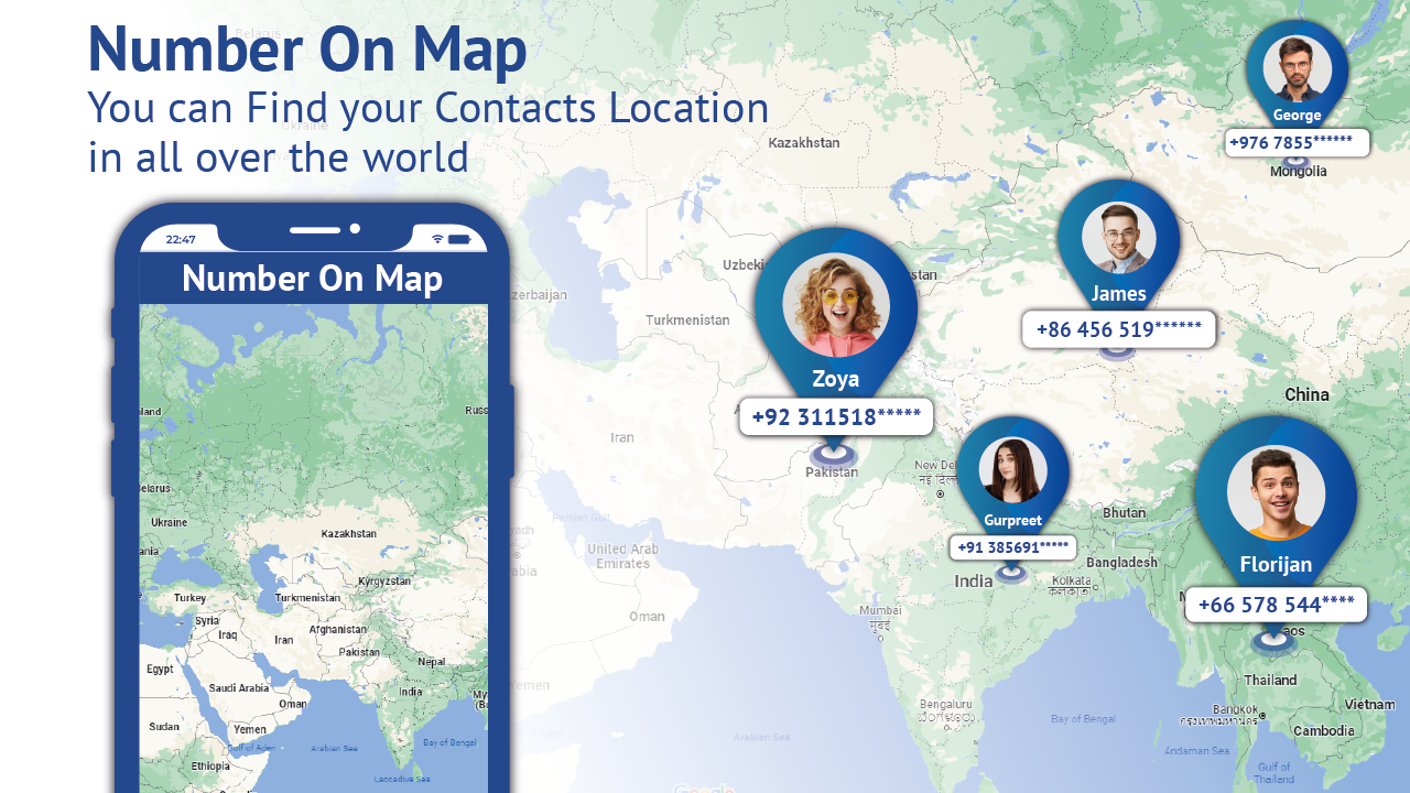 Die Phone Number Tracker-Anwendung hilft Ihnen, jede Telefonnummer von überall im Land zu verfolgen. Sie können nach einer beliebigen Handynummer suchen, um den Kontaktnamen und den Standort zu finden, indem Sie den GPS-Standort von Mobile Number Tracker verwenden. Das Stadtgebiet, das Bundesland, das Land und der Dienstbetreiber der Telefonnummer werden angezeigt, und der geografische Standort wird auf den Karten mithilfe des Nummerntrackers und des Standortnamens angezeigt. Number Locator GPS Location ist eine kostenlose App, mit der Sie die Handynummern Ihres Freundes suchen können, der sich in Ihrem Share Location Circle Phone Number Tracker befindet. Auf diese Weise können Sie den aktuellen Standort Ihres gewohnheitsmäßig verspäteten Freundes Nummerntracker und Standortnamen finden.