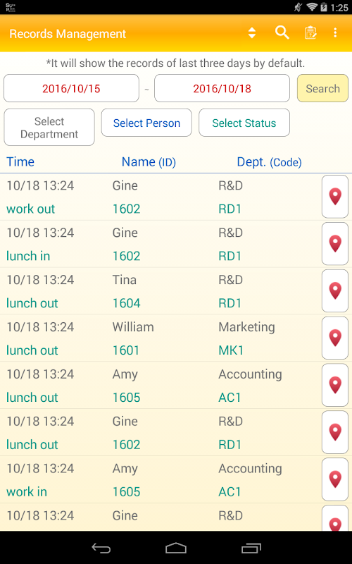 Mehrere benutzerdefinierte Aufzeichnungsstatus können gemäß den tatsächlichen Bedürfnissen eingestellt werden, z. B. Einarbeiten, Ausarbeiten, Mittagspause, Mittagspause, Überstundeneingabe und Überstundenzeitung. Aufgrund der guten Mobilität und Portabilität ist es für verschiedene Umstände geeignet.