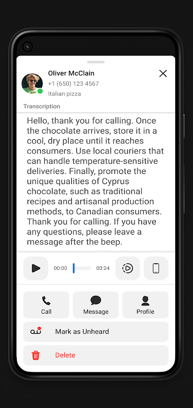 • Greifen Sie dank einfacher Wiedergabe und Verwaltung von überall auf Ihre Voicemail zu