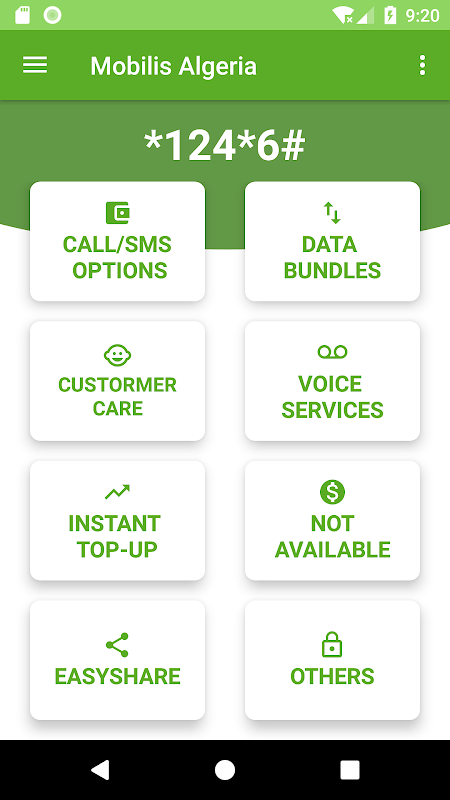 Mobilis Algeria USSD Codes is an App that saves you the stress of memorizing short codes for Mobilis Algeria services such as subscribing for an Internet package, subscribe to an SMS package, check your AirTime balance, access Mobilis Algeria Mobile Money services and a lot more without having to Enter any Code . All you need to do is just click a button. With Mobilis Algeria you are able to send a BipMe message, transfer Mobilis airtime just by clicking a button and selecting the number from your Contacts list