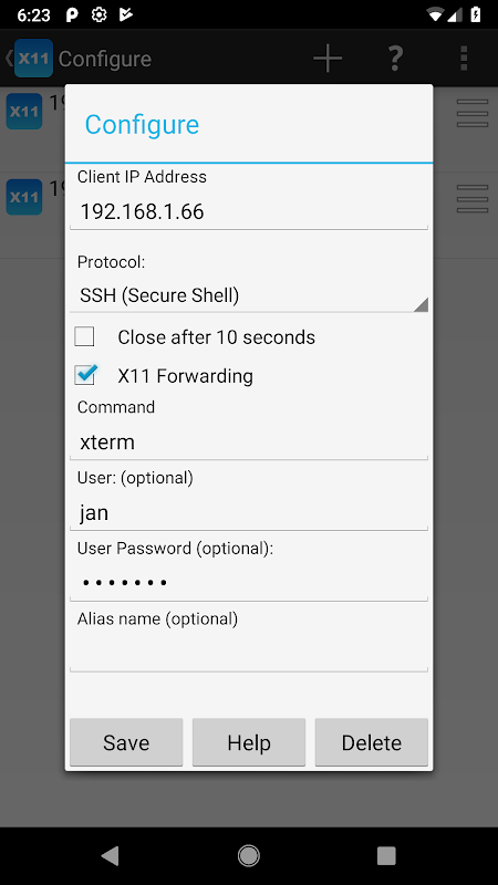 Die UNIX-Anwendung wird auf dem Remote-Server ausgeführt, die Anwendungsausgabe wird jedoch auf dem Android-Telefon / -Tablet angezeigt. Mocha X11 enthält Clients, die zum Starten der Remote-Anwendung konfiguriert werden können.