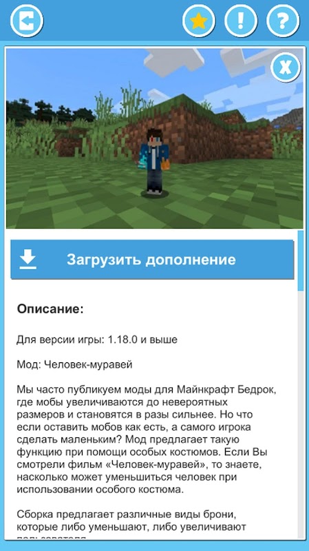 Dies ist eine inoffizielle App für Mods und Add-Ons. Diese Anwendung ist in keiner Weise mit den Entwicklern des Originalspiels verbunden, für das sie bestimmt sind.