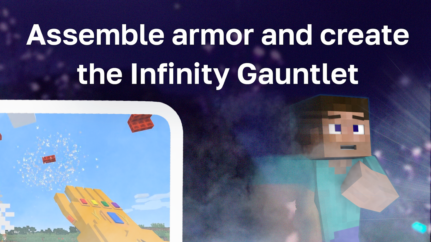 Thanos ist ein Mann der Unendlichkeit und ein Stein, der alles auf seinem Weg zerstören kann, kein anderer Stein in Minecraft Pocket Edition wird ihn aufhalten. Der Unendlichkeitshandschuh in Minecraft ist wie ein Joker in Karten, weil Sie praktisch unsterblich sind. Thanos ist ein Wunderheld, und er verdient seinen eigenen Mod in der Welt von Mcpe Bedrock, deshalb laden wir Sie ein, das Minecraft-Addon Infinity Gauntlet Mod auszuprobieren.