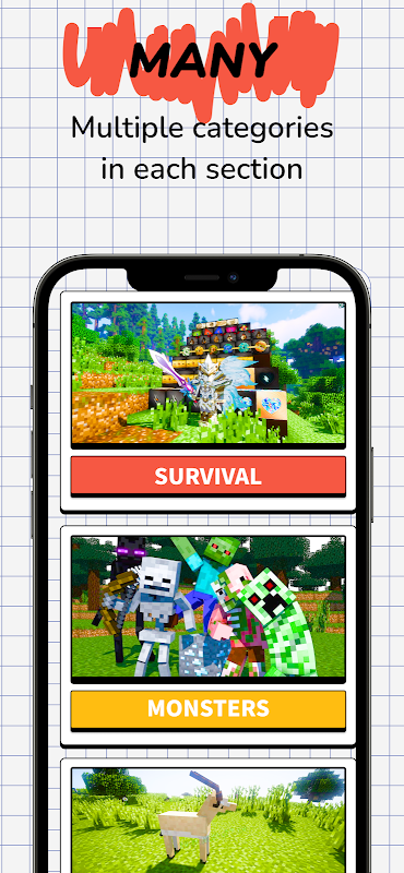 In unserer Anwendung konnten wir viele Abschnitte für eine Vielzahl von Add-Ons für Ihr Lieblings-Minecraft-Spiel sammeln. In unserer Anwendung finden Sie verschiedene Kategorien und Unterkategorien für das Minecraft-Spiel. Wir haben die besten Sammlungen und Karten gesammelt , Mods, Skins, Skin Packs, Sids, Texturen und vieles mehr für das Minecraft-Spiel