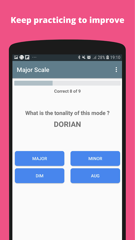 Das Quiz behandelt die Namenserkennung, die Skalengradidentifikation, die Tonalität der Skala, die Tonnamen und vieles mehr. Das Quiz hängt nicht von der Kenntnis eines bestimmten Instruments ab.