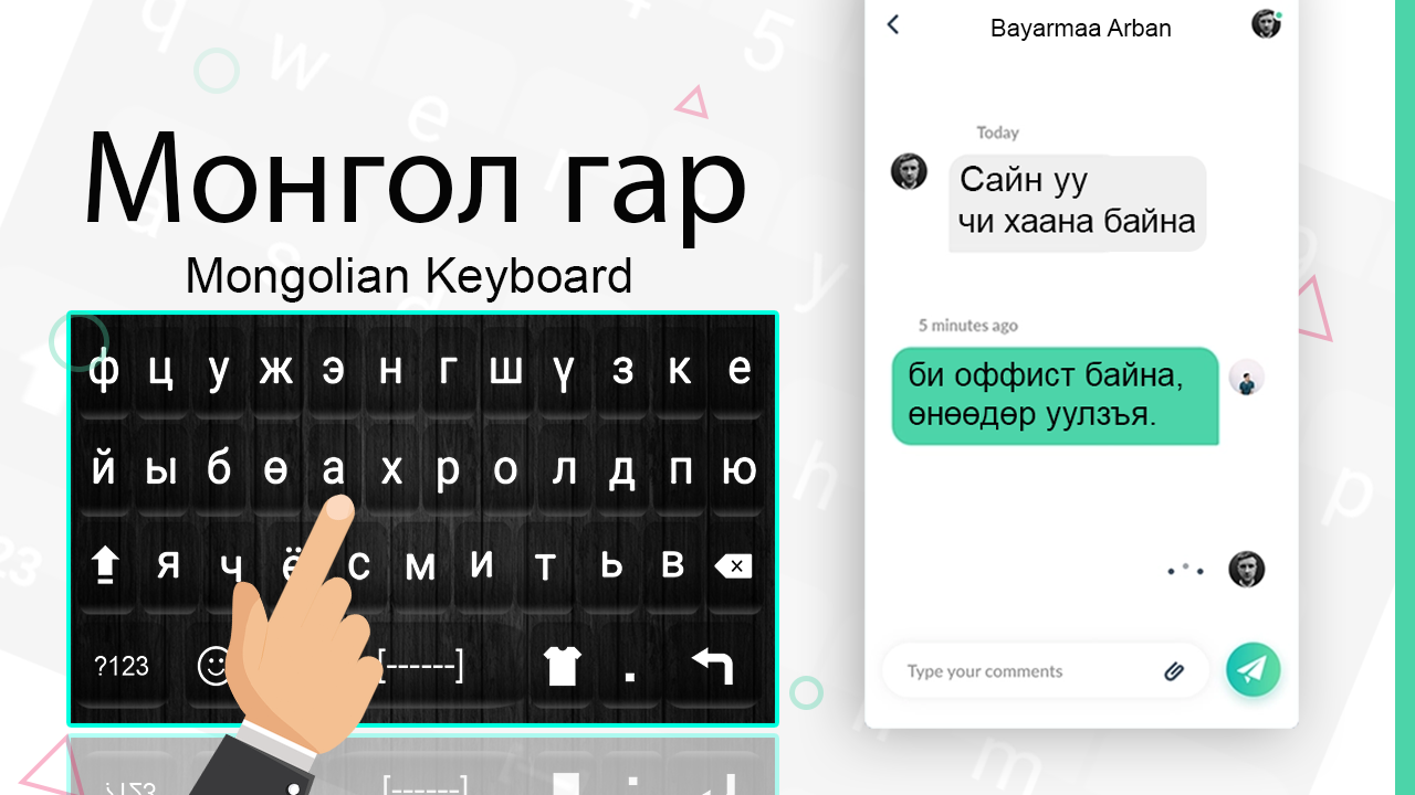 Mongolische Tastatur: Mongolische Schreibsprache zum Chatten und Schreiben von Texten. Sie müssen nicht mehr zu einer mongolischen Sprache wechseln. Die Tastatur ist in Ihre Tastatur integriert. Mongolische Tastatur: Die mongolische Schreibsprache ist eine vollständige mongolisch-englische Schreib-App, bei der eine einzige Schaltfläche für den Wechsel zur mongolischen Schreibtastatur hinzugefügt wurde. Holen Sie sich diese mongolische Tastatur: Mit der mongolischen Schreibsprache können Sie Ihre mobile Tastatur stilvoller und trendiger als je zuvor gestalten. Durch die mongolische Tastatureingabe erhält Ihre Android-Tastatur die eleganteste personalisierte Tastaturoptimierung. Die mongolische Tastatur bietet das fantastischste Tipperlebnis.