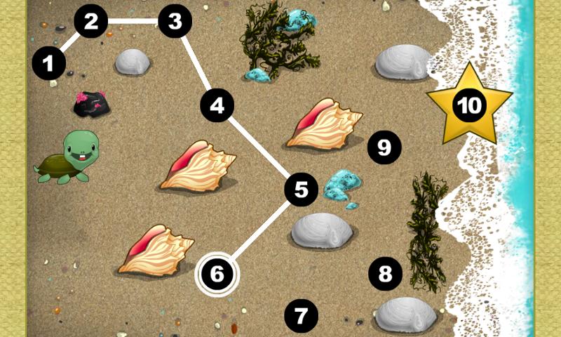 Baby-Schildkröte auf dem Strand stecken und sie braucht deine Hilfe, um zum Meer zu bekommen! Verbinden Sie die Punkte, um ihr zu zeigen, welcher Weg zu gehen.