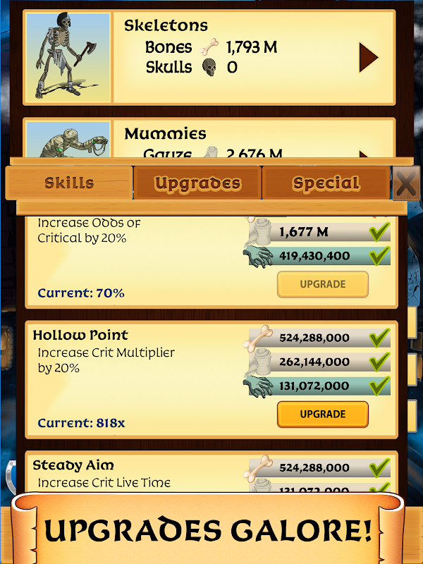💀 Sei hartnäckig, tippe einfach auf tippe und sammle mit einem Power-Up so viele Knochen wie möglich. Lerne, wie man plündert und vergiss nicht, den Tipp-Assistenten zu verwenden, der dir im Monsterkampf hilft, während du weg bist.