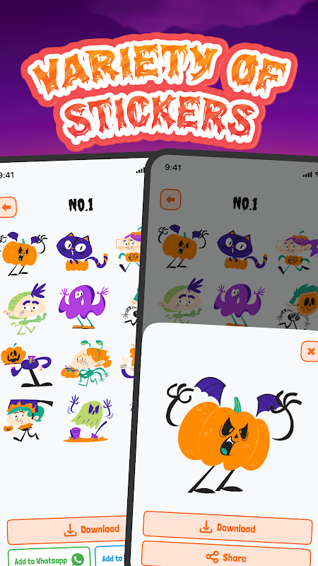 Gruselig-coole Halloween-Sticker! Wähle aus einer Vielzahl gruseliger, süßer und skurriler Sticker-Pakete zum Herunterladen oder direkt an WhatsApp, Telegram und andere Plattformen 📲. Diese gruseligen Sticker eignen sich perfekt, um deinen Chats mit Freunden und Familie Halloween-Flair zu verleihen.