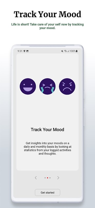 MoodMate ist ein perfektes Werkzeug, um Ihre Emotionen zu verfolgen, indem Sie ein privates Tagebuch führen. Der Schlüssel zur Bewältigung von Stress und unerwünschten Gedanken besteht darin, sich der Aktivitäten, Orte, Ereignisse oder Personen bewusst zu sein, die Sie glücklich oder unglücklich machen.