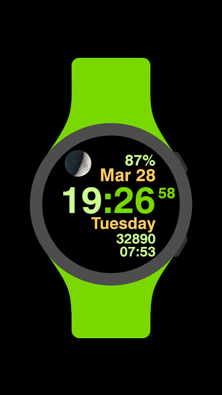 Dies ist die Pro-Version des Moon Steps Watch Face für Wear OS-Smartwatches.