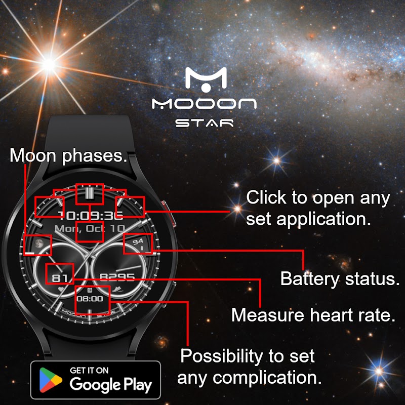 Zifferblatt im minimalistischen Stil mit Mondphasen, Datum, analoger und digitaler Uhr.