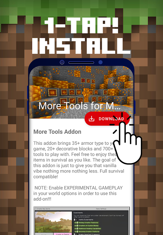 Automatisches Herunterladen und Installieren von More Tools Addon für Minecraft PE