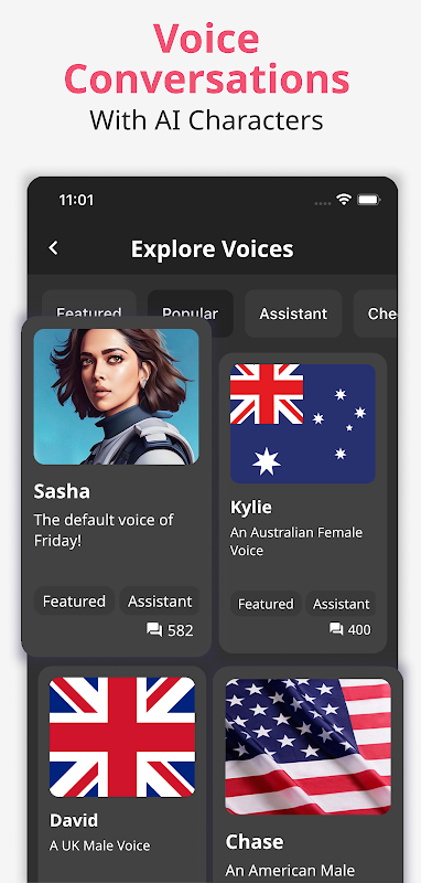 KI-Gespräche, die sich lebendig anfühlen. Erstellen und chatten Sie jedoch jederzeit mit jedem!