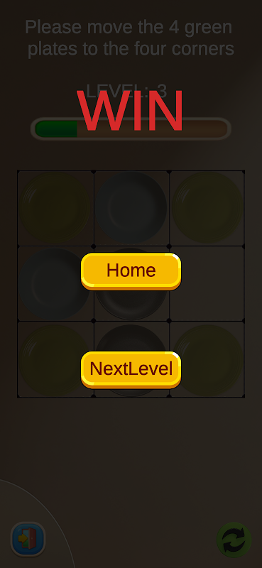 Das Spiel besteht aus einem 3-Reihen-3-Spalten-Gitter mit schwarzen, weißen und grünen Platten. Die Positionen der Teller sind zu Beginn des Spiels zufällig. Wenn sich die grünen Platten in den vier Ecken befinden, können Sie zum nächsten Level gelangen!
