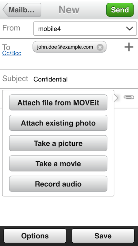 MOVEit Mobile bietet sicheren Zugriff auf Dateien über einen MOVEit-System verwaltet.