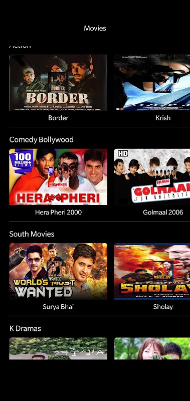 The app as the name describes is used to watch Bollywood movies genre wise. A lot of content is coming with many many and many more functionalities so stay tune and if you find any movie missing which you want to watch. Comment down or mail us your movie and we will make sure to get it delivered inside your application as soon as possible.