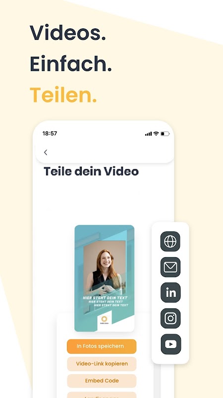 - Dein Video ist automatisch CI-konform durch die Einarbeitung von Logo und Farbe