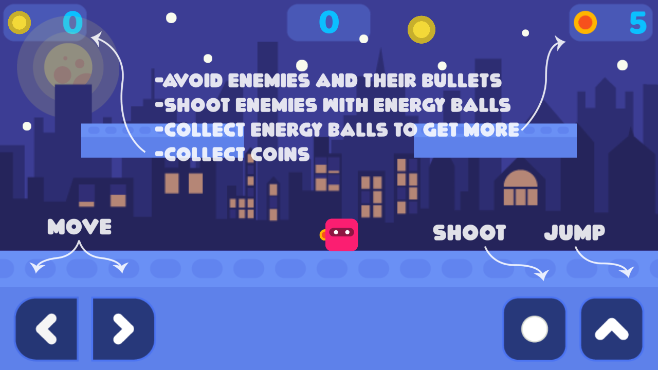 - Schieße auf Feinde mit Energiebällen, die du unterwegs sammelst (es ist begrenzt, also sei vorsichtig