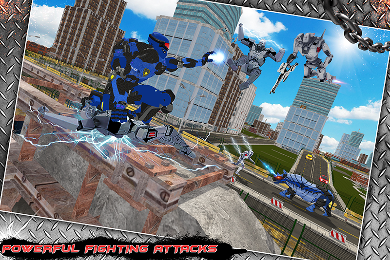 Quantum vision of the next generation police is to save human lives. Many police men lost their life in the line of duty. Now we can save them by introducing Robotic Cops that will replace a human life on the field of Battle. A human can’t stand a chance in Robotic Wars. So they have created a new generation of Robots that can transform in to a Rhino with the powers of a wild Beast, and a Super car that can provide you the speed you need. Enjoy a whole new level of Robo Wars in Multi Police Rhino Robotic Car vs Evil Robots.