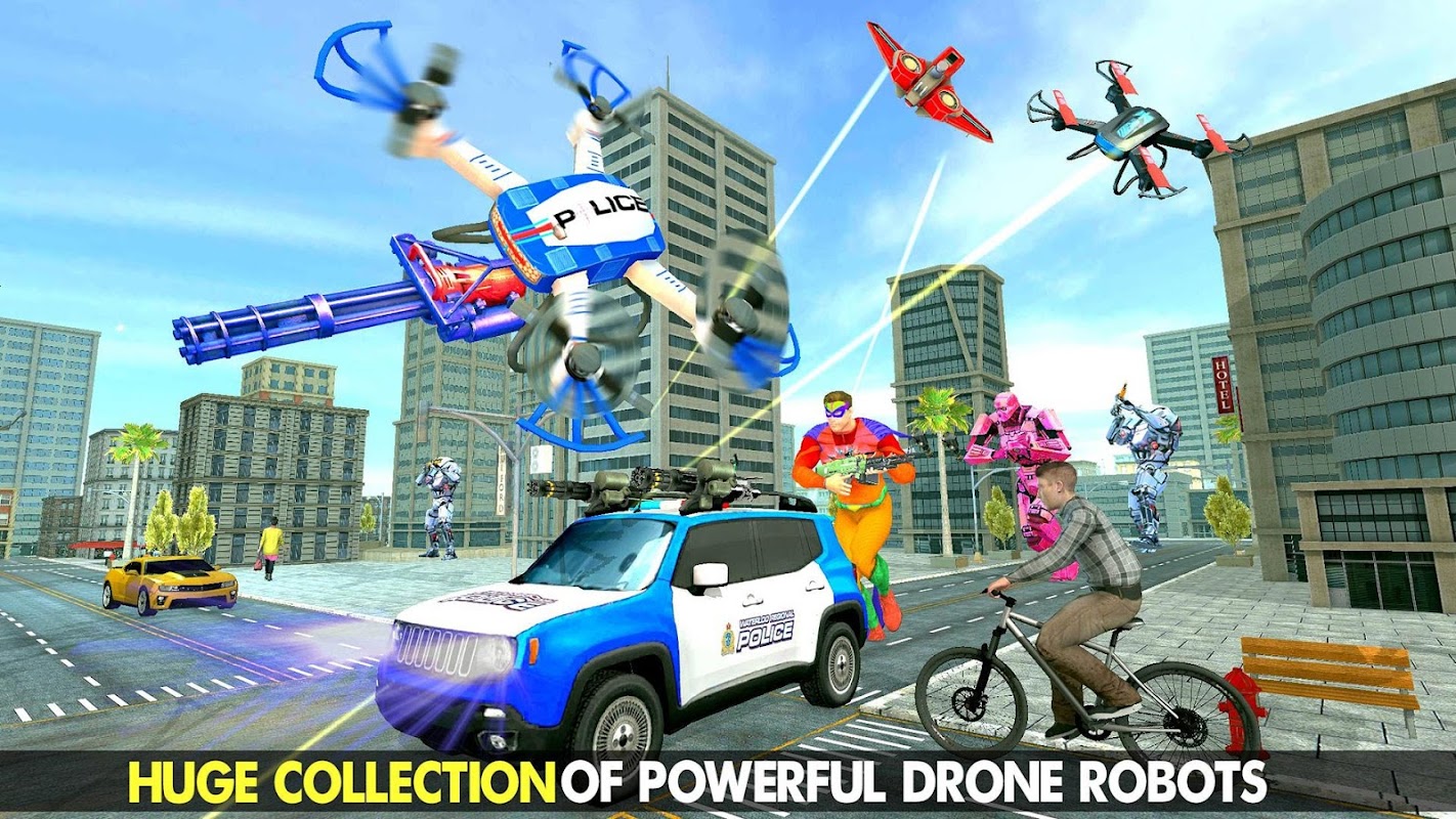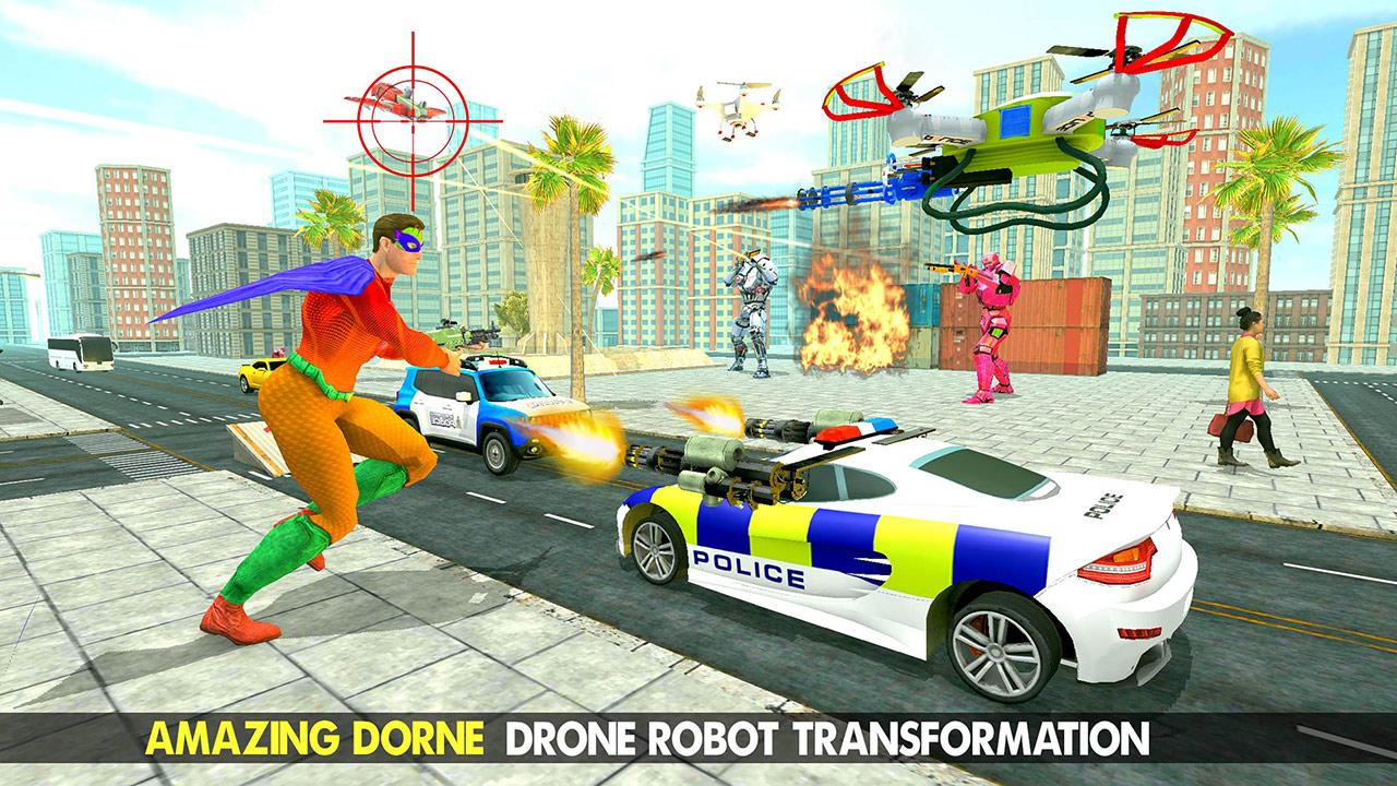 Mach mit und rette die Stadt. Kriegsroboter der feindlichen Helden sind immer auf Zerstörung aus. Komm zusammen und sei der beste Polizei-Super-Drohnen-Shooter des Staates. Kommandiere deine Polizei im großen Stil und erobere neue Gebiete, um deine Kräfte zu erweitern.