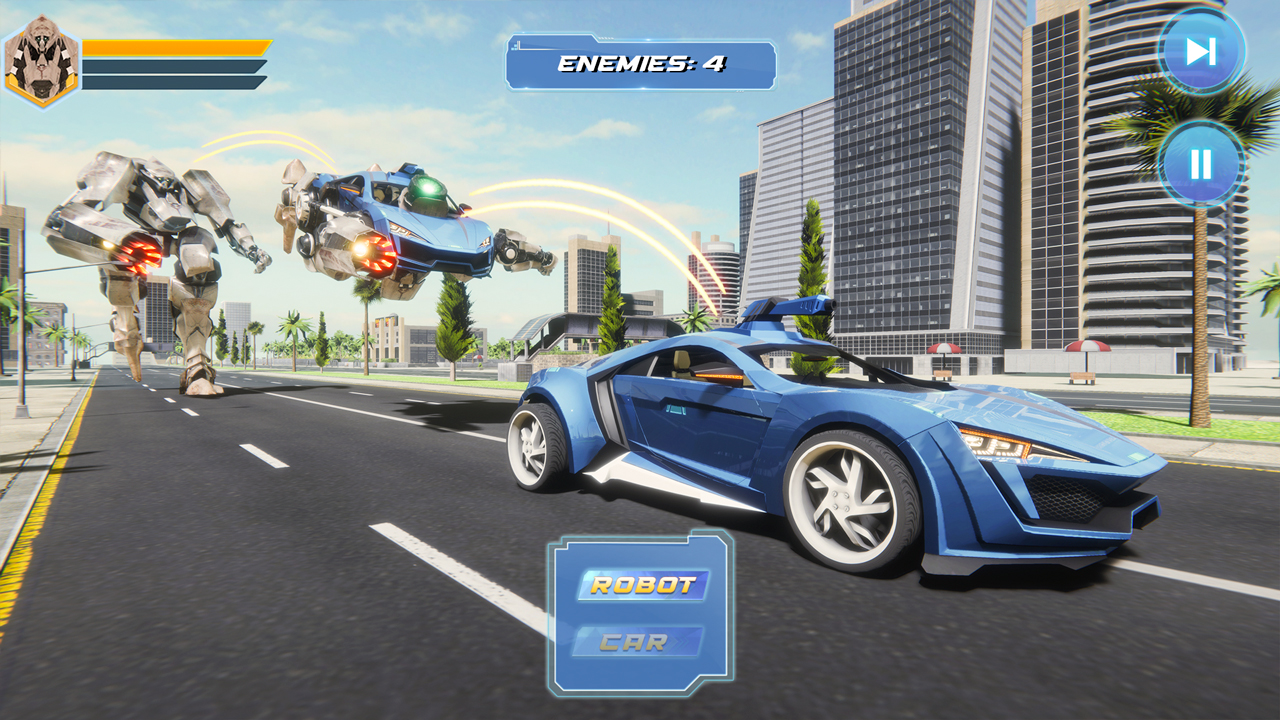 Robot transforming fighting game is a battle between other planet mech robot and earth robot car transform; where you have to save your planet from the alien multi robot transformation and destroy them all by using your spaceship robot techniques. Be the robot transformation hero and destroy the other planet mech jet robot to become the warrior of your planet in this multi robot transform games for all giant robot transformation lovers, Multiple thrilling and exciting grand super robot war games atmosphere along with amazing car robot transform contest that will glow your mind with amazing flying jet robot car transforming game missions against other planet mech robot enemies in this amazing jet robot car transformation contest with thrilling adventurous robot car games assign tasks to do. Be the US police robot transform hero and destroy the enemies planet by using your robot transformation power in this multi robot transform game.