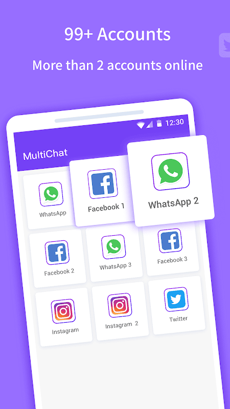 Multichat ist eine App für mehrere Konten zum Klonen von 2 WhatsApp, 2 Facebook, 2 Instagram usw. Sie können mehrere Konten für alle Apps in Multichat ausführen.
