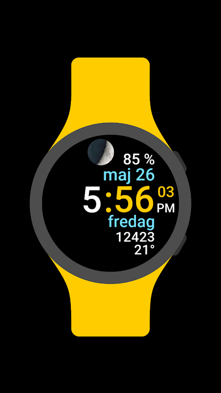 Wear OS-Zifferblatt mit 30 Farbthemen und mehrsprachigem Datum und Wochentagen