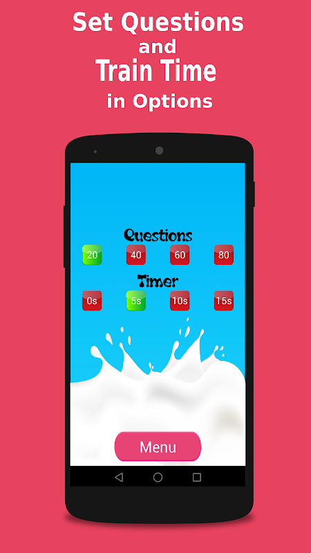 You can adjust this seconds in Options menu and you will find Questions count in it. If select 0 sec that means you select no time. Until answer correct ballons it will wait your answer. There are 4 Questions count in Options menu (20 - 40 - 60 - 80)