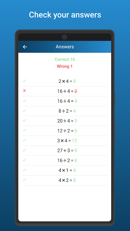 Überprüfen Sie Ihre Antworten: Erhalten Sie sofortiges Feedback zu Ihren Antworten. Die App hilft Ihnen nicht nur bei der Lösung von Problemen, sondern stellt auch sicher, dass Sie verstehen, wo Sie richtig oder falsch gelaufen sind.