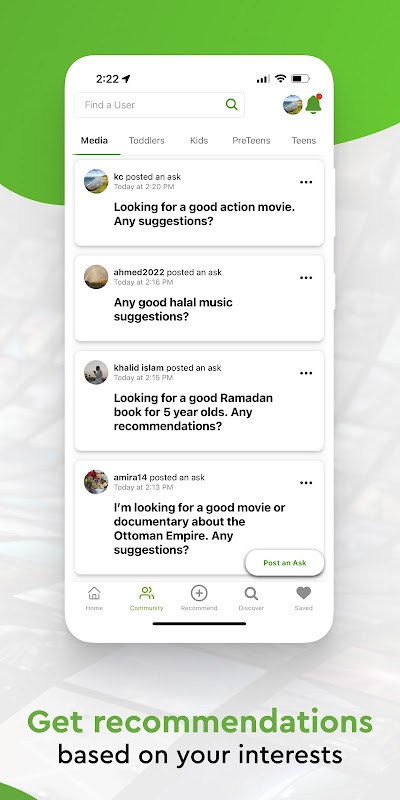 Eine Social-Community-App, mit der Sie Medienempfehlungen von Menschen mit islamischen Werten entdecken können. Finden Sie Filme, Bücher, Fernsehsendungen, Streaming-Serien, Dokumentationen, Podcasts und mehr. Holen Sie sich Bewertungen von Medien aus muslimischer Perspektive. Diese App macht es Ihnen leicht, anderen zu helfen, indem Sie nützliche und interessante Inhalte mit Benutzern auf der ganzen Welt teilen. Muslim-Friendly ist eine revolutionäre App, die Ihnen einen Home-Feed gibt, der nur das anzeigt, woran Sie interessiert sind. Beinhaltet ein Community-Forum, in dem Sie nach spezifischen Empfehlungen für Erwachsene, Kinder, Teenager, Kleinkinder und mehr fragen können. Folgen Sie Benutzern und bleiben Sie mit ihren Empfehlungen in Verbindung. Treten Sie noch heute der Community bei!