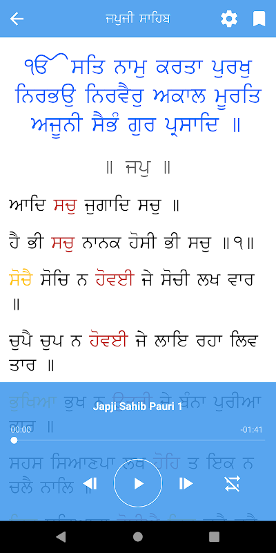 Eigenschaften dieser App sind: Gurbani-Text, Kirtan-Tracks, Pauri-by-Pauri-Aufnahme von Gurbani