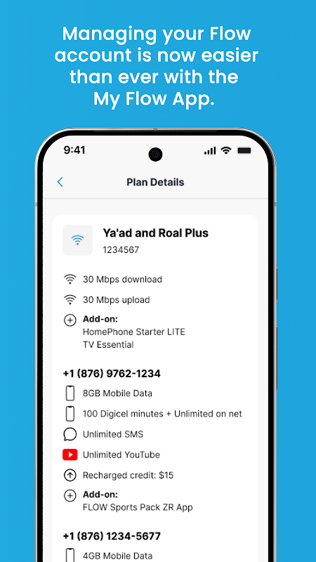 Übernehmen Sie die Kontrolle über Ihre Flow-Dienste – jederzeit und überall. Verwalten Sie ganz einfach Ihr Konto, beheben Sie Probleme und greifen Sie mit nur wenigen Fingertipps auf den Support zu.
