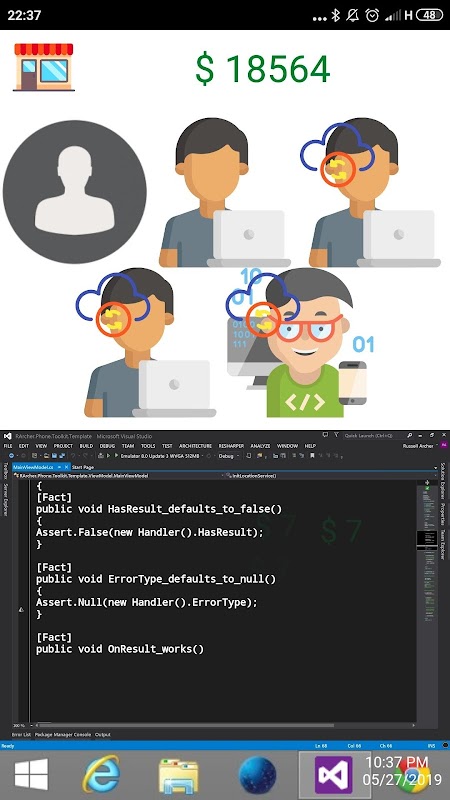 Während des Spiels müssen Sie in die Entstehung Ihres Startups eintauchen, nämlich in die Entwicklung Ihres eigenen Softwareprodukts. Die Codierung erfolgt mit Hilfe von Berührungen in einem speziellen Bereich auf dem Display, der in Kombination den Bildschirm Ihres Computers darstellt. Von Zeit zu Zeit werden auf dem Bildschirm möglicherweise Benachrichtigungen zu der Frage angezeigt, die in Bezug auf Ihren Code aufgetreten ist. Für die Auflösung müssen Sie nur auf das entsprechende Symbol klicken. Außerdem kann es bei der Entwicklung des Codes zu Fehlern kommen, die Sie so schnell wie möglich beseitigen müssen, indem Sie auf die entsprechende Schaltfläche auf dem Bildschirm tippen, die Ihnen die ganze Zeit erspart.
