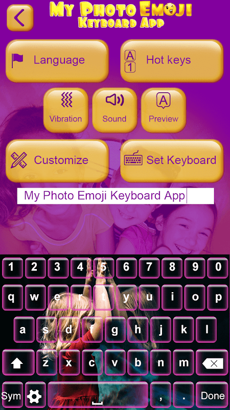 ღ Keyboards are one of the least customizable items on your smartphone or tablet device. You only get to pick the color and the font, but apart from that there is not much else. You are stuck the plain white or black background that becomes really tiresome after a while. Well, that's all about to change! ☼ My Photo Emoji Keyboard App ☼ is an outstanding keyboard photo app that will completely change the way your keypad looks! Turn your keyboard appearance upside down with this amazing “picture keyboard” which allows you to add any photo from the gallery of your device, and apply it as a “keypad wallpaper”. Don't miss this unique chance to acquire the best “keypad app” available on the market right now! This is a totally free application that you won't regret downloading!
