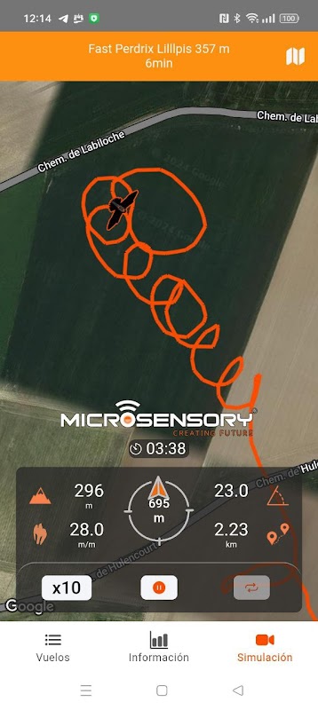 Die Anwendung ermöglicht es uns auch, die aufgezeichneten Flüge und eine detaillierte Grafik mit Höhe, Geschwindigkeit und Tauchgang anzuzeigen.