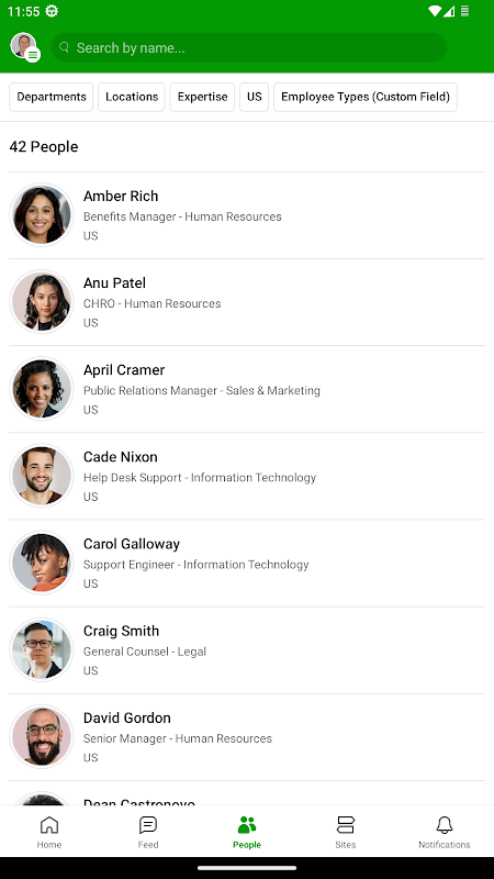 Finden und rufen Sie Experten mit einem Mitarbeiterverzeichnis an, das die Fähigkeiten und Fachkenntnisse der Kollegen profiliert, sodass Sie immer mit der richtigen Person in Kontakt treten können