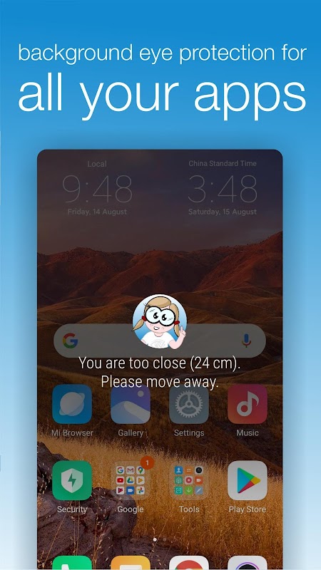 - Wenn Sie längere Zeit aus der Nähe schauen, kann dies zu einem Verlust der Weitsicht führen. Myopia.app hilft Ihnen dabei, Ihr Gerät in einem gesunden Abstand zu halten.
