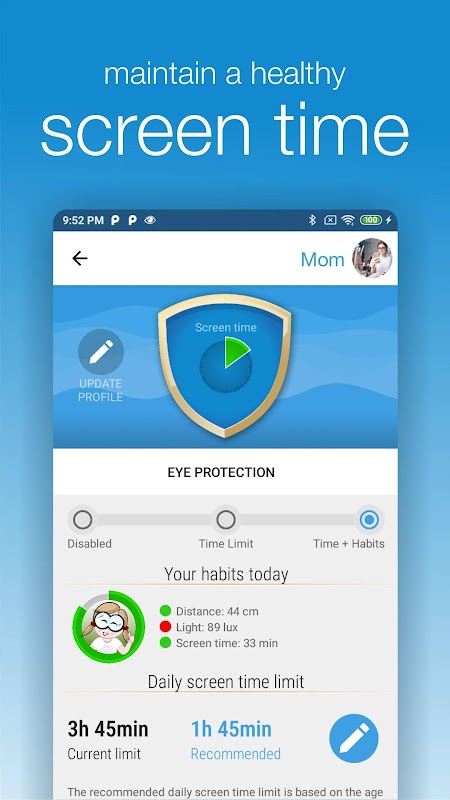 - Passen Sie das Augenschutzniveau für jedes Ihrer Familienmitglieder an und legen Sie ein tägliches Bildschirmzeitlimit fest.