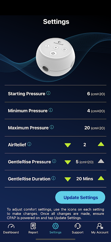 Beteiligen Sie sich aktiv an Ihrer CPAP-Therapie mit MySleepDash, einer mobilen Anwendung, die Sie über die Therapie Ihrer letzten Nacht auf dem Laufenden hält. Von Informationen über Ihre Therapiestunden bis hin zu Druck- und Leckagezusammenfassungen ermöglicht Ihnen MySleepDash, Ihre nächtliche CPAP-Therapie und den Fortschritt zu überwachen. Sie können auch schnell die Einstellungen Ihres Geräts überprüfen, auf häufig gestellte Fragen zugreifen und Ihre Compliance herunterladen oder mit Ihrem Gesundheitsdienstleister teilen.
