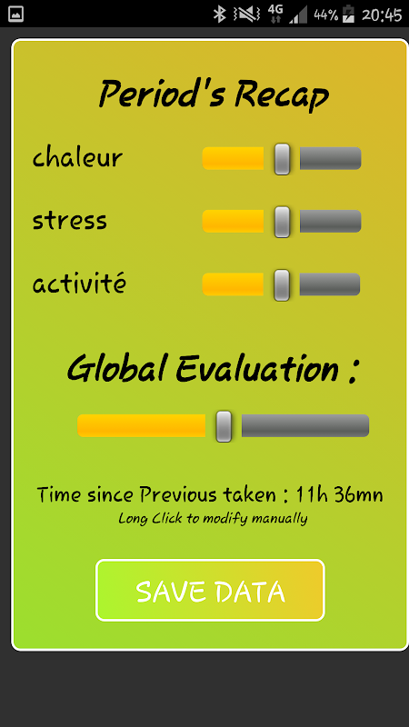 - Drücken Sie PREVisions, um auf die Registerkarten für die Analyse und die Vorschau zuzugreifen. Dort können Sie Takens-Diagramme erstellen, um den Entwicklungen zu folgen. Sie können auch einige automatische Erinnerungen für Ihre nächsten Taben einstellen (wird eine Benachrichtigung auf Ihrem Telefon senden)