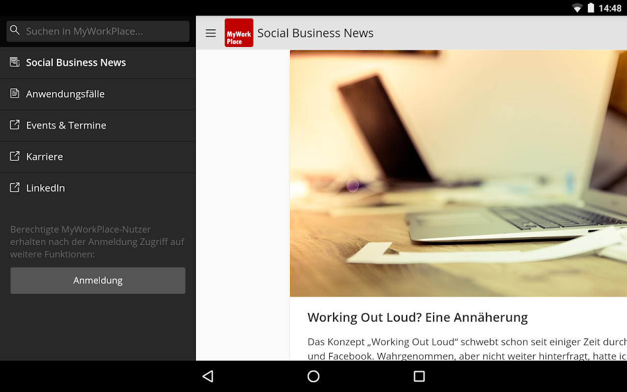 Die App MyWorkPlace versorgt Sie mit Nachrichte über das Unternehmen.