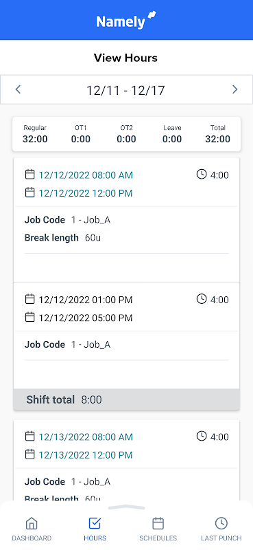 • Ein Offline-Modus ermöglicht es Mitarbeitern, Namely Time an entfernten Standorten zu verwenden.