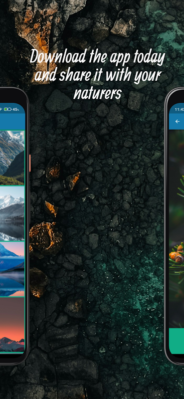 Warum Naturhintergründe wählen? Unsere App bietet eine große Auswahl an wunderschönen Hintergrundbildern für jeden Naturliebhaber. Genießen Sie Offline-Zugriff auf Ihre Lieblingshintergründe, ohne dass eine Internetverbindung erforderlich ist. Der Schwerpunkt der App liegt auf der Bereitstellung eines nahtlosen Benutzererlebnisses. Mit einer einfach zu navigierenden Benutzeroberfläche ist das Festlegen von Hintergrundbildern nur ein paar Fingertipps entfernt.