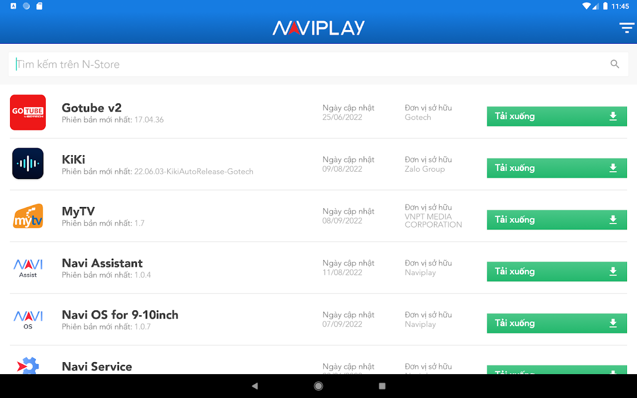 Navi Store (N-Store) là nền tảng cung cấp ứng dụng được điều hành và phát triển bởi CÔNG TY CỔ PHẦN CÔNG NGHỆ VM. Đóng vai trò là kho ứng dụng chính thức cho hệ sinh thái màn hình ô tô thông minh NAVIPLAY, cho phép người dùng duyệt và tải xuống các ứng dụng được phát triển bởi NAVIPLAY R&D. Người dùng có thể theo dõi và cập nhật những tính năng mới nhất một cách vô cùng dễ dàng. Các ứng dụng mới sẽ được NAVIPLAY cập nhật lên một cách thường xuyên để đáp ứng nhu cầu sử dụng của khách hàng.