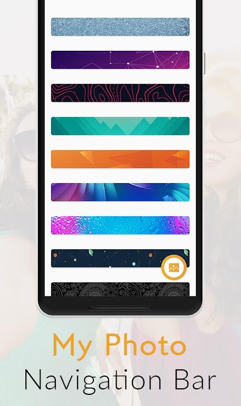 ♦ My Photo Navigation Bar is a personalization app that adds cool images, colors to your navigation bar which can be configured to make it your own. Choose from a wide variety of custom packs and never let your navigation bar be boring again!